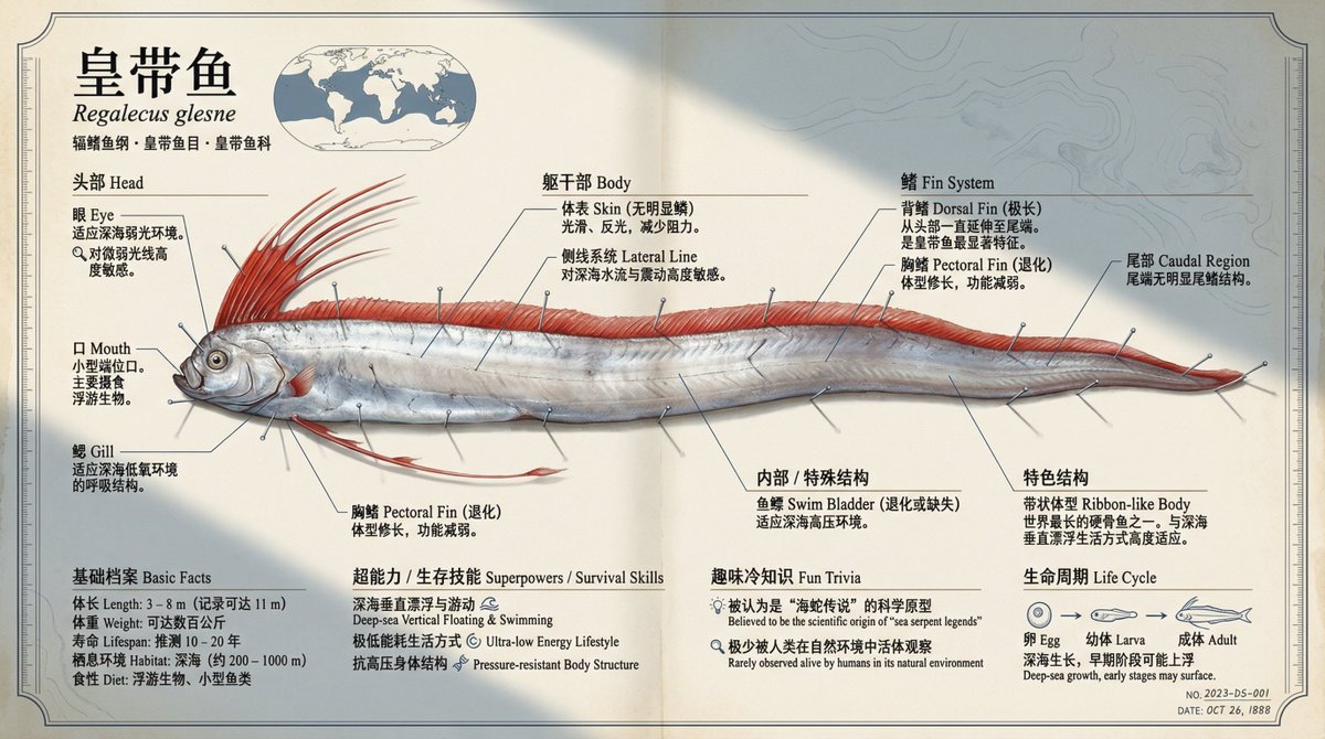 中心:巨大的鱼类标本图像,占据画面 60–70%