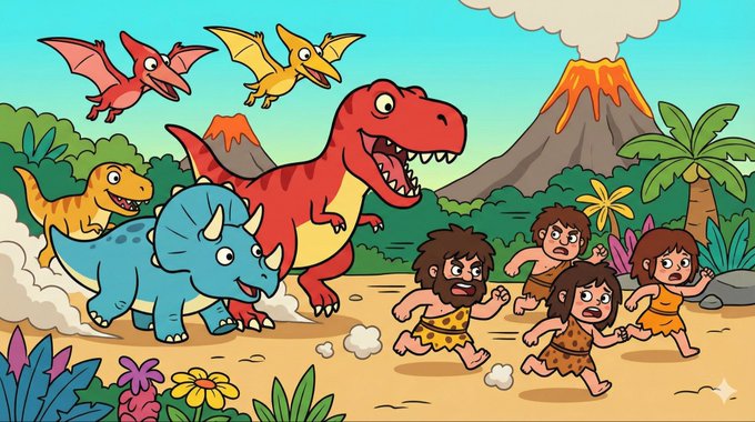 (比例: 16:9),[详细内容]。极具辨识度的2D扁平卡通插画风格,极粗的黑色轮廓线描边,手绘矢量感,Q版可爱人物造型,赛璐珞平涂上色(大色块,无渐变),高对比度配色。纯粹的插画作品,无任何游戏UI界面。