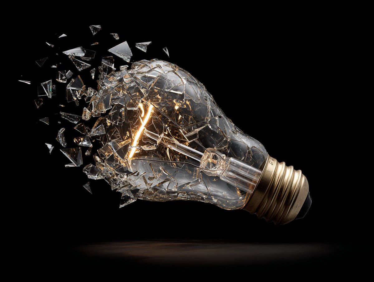 [PRODUCT] shattering into geometric fragments, explosion of pieces suspended mid-air, controlled destruction, black background, each shard lit individually, deconstructed beauty, high-speed capture aesthetic.