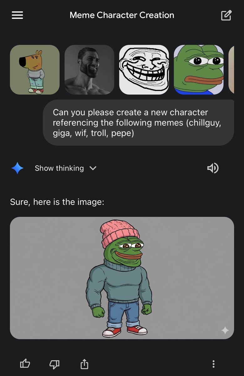 I created memeguy with Nano Banana Pro, using references from $CHILLGUY, $WIF, $GIGA, $PEPE, and $TROLL — all the top meme runners on Solana.