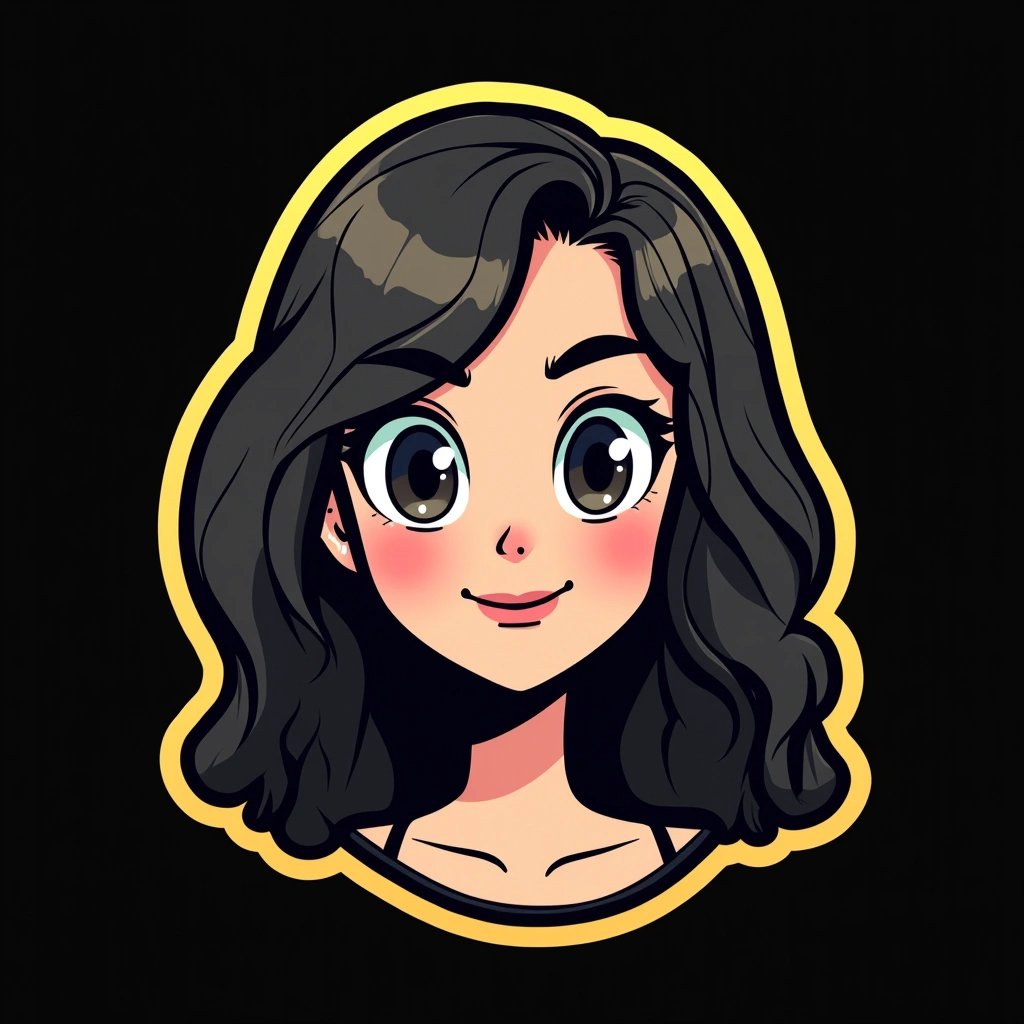 Create a high-resolution illustration of a [OBJECT] icon in the style of a flat, outlined sticker graphic. The icon should be made entirely from very thin, solid black outlines with no interior fill. Add a bold, soft-edged sticker-style contour around the icon using a flat, vibrant [YELLOW, BLUE, OR PINK] color. The result should look like a cartoon-style icon cut from black paper, outlined by a bright color. Do not use any white or filled shapes inside. No gradients, no shadows, no textures. Vector-friendly. Black background. Square aspect ratio.