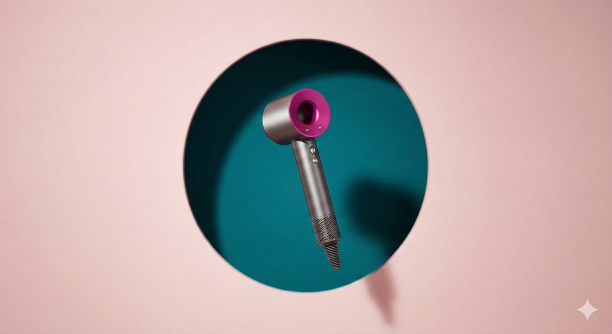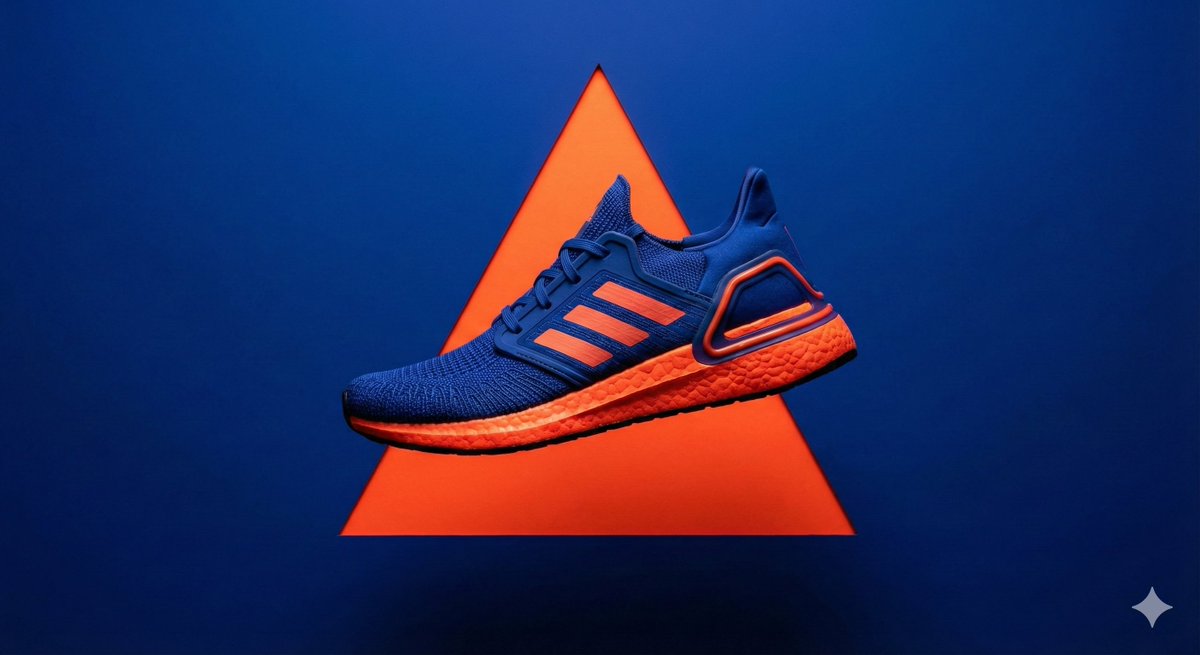 [PRODUCT] suspended in front of a die-cut shape (circle/triangle), bold complementary color pair, hard side light to create a crisp silhouette, shallow DOF, editorial-advert style.