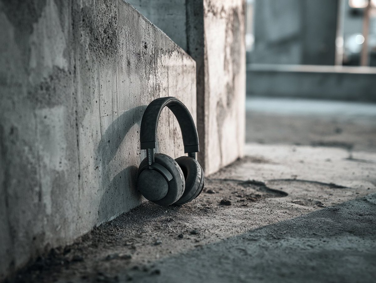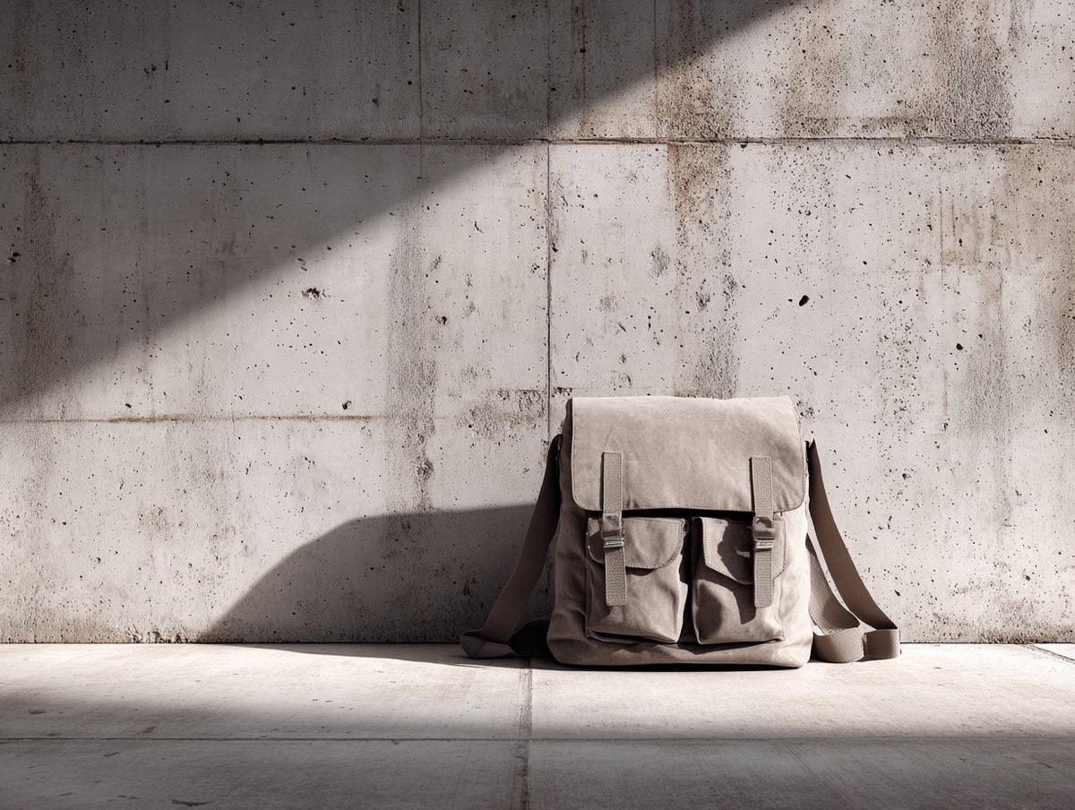 [PRODUCT] on raw concrete or brutalist architectural surface, harsh angular shadows, overcast soft lighting, industrial minimalism, street-level perspective, urban grit aesthetic, contemporary edge, texture of city.