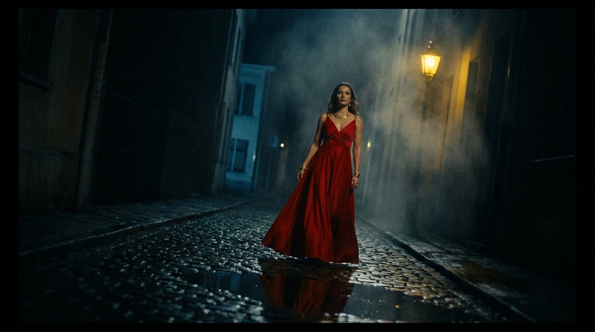 [SUBJECT], single frame film still, medium wide shot composition, eye-level camera with subtle dutch angle 5 degrees, Cooke S4 75mm prime lens T2.0 wide open, extremely shallow depth of field with focus fall-off, dramatic side lighting from frame right at 90 degrees, deep contrast low-key illumination, shadow density at 95% black, lifted blacks avoided, rich dark tones dominating 70% of frame, cool desaturated color palette with steel blue undertones, bleach bypass processing look, shot on ARRI Alexa LF with vintage Kowa anamorphic glass, organic halation on highlights, smoky atmospheric density, volumetric light cutting through darkness, no fill light pure shadow areas, cinemascope framing with subject in lower third, subtle depth parallax movement for animation layers. @Adobe @AdobeFirefly boards.