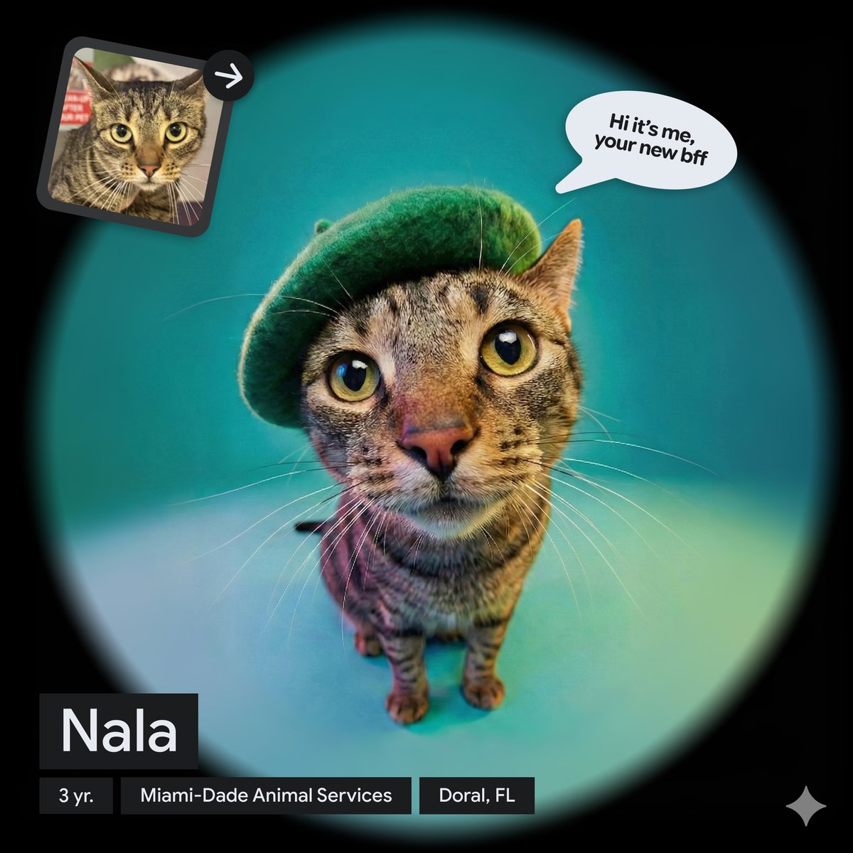 We’ve teamed up with shelters across the country to give rescue pets glamorous headshots that show off their personalities, made with Nano Banana Pro.