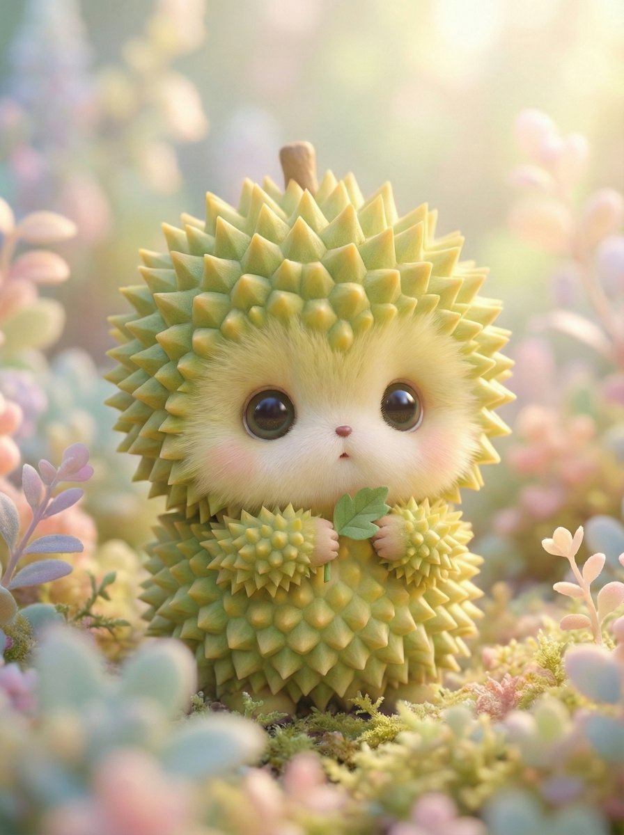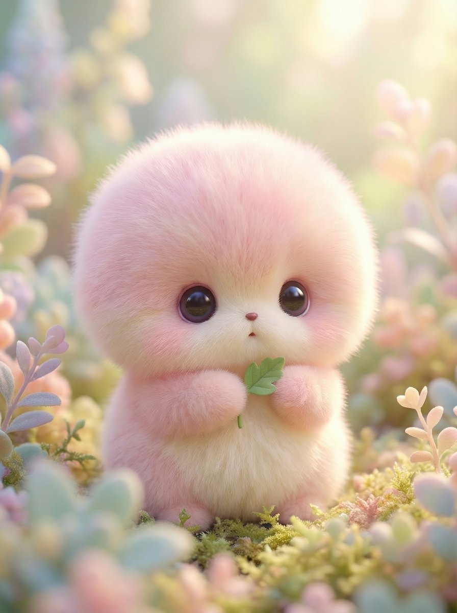 An ultra-cute, baby-like embodiment of all things, shaped like a tiny fluffy puff,