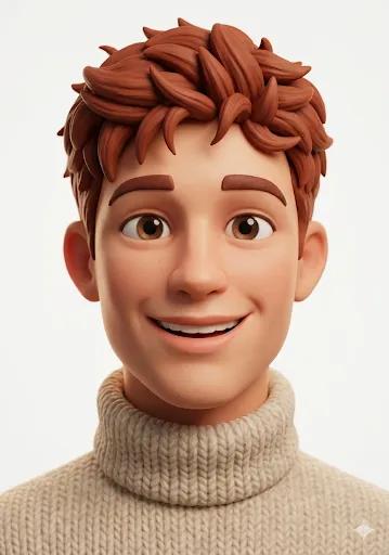 Cute stylized 3D character portrait, big expressive eyes, soft smooth skin, playful facial expression, clean symmetrical face, wearing cozy knitted sweater, pastel neutral background, soft studio lighting, Pixar/Disney style, ultra-detailed, high resolution, shallow depth of field, centered composition, cinematic lighting, 8K render, glossy eyes, subtle subsurface scattering