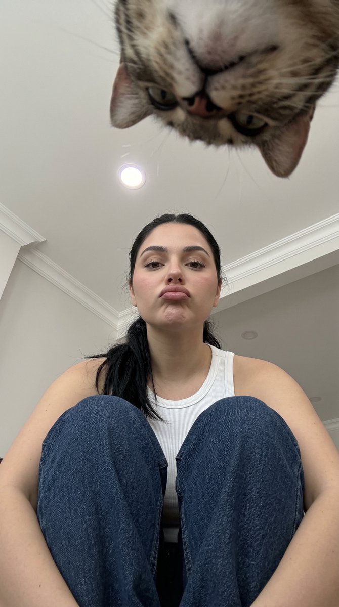 "expression": "Slightly pouting, looking directly up at the lens",