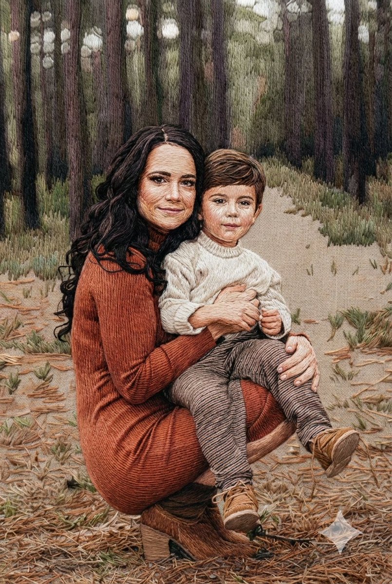 Use the uploaded image as the strict character reference. Preserve the character’s facial structure, expression, skin tone, hairstyle, outfit, proportions, and pose exactly as shown. Also keep background structure. Do not modify, beautify, stylize, or reinterpret the face in any way beyond embroidery translation. Render the character as hyper-detailed hand embroidery artwork, using realistic satin stitches, long-and-short stitches, and dense fill stitches to create natural depth, fabric texture, and thread sheen. Visible embroidery threads, precise stitch direction following facial contours, smooth gradients formed through thread layering, high stitch density, museum-quality textile craftsmanship. Neutral fabric background, soft studio lighting, ultra-sharp macro detail, photorealistic embroidery realism, no illustration or cartoon style.