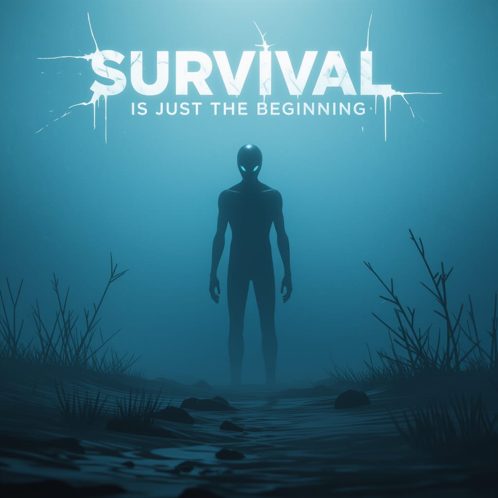 Render the title “[MOVIE TITLE ]” in expressive kinetic typography that visually embodies the meaning of the word (e.g. dissolving, cracked, melting, glowing). Typography should feel integrated into the environment, bold and iconic.
