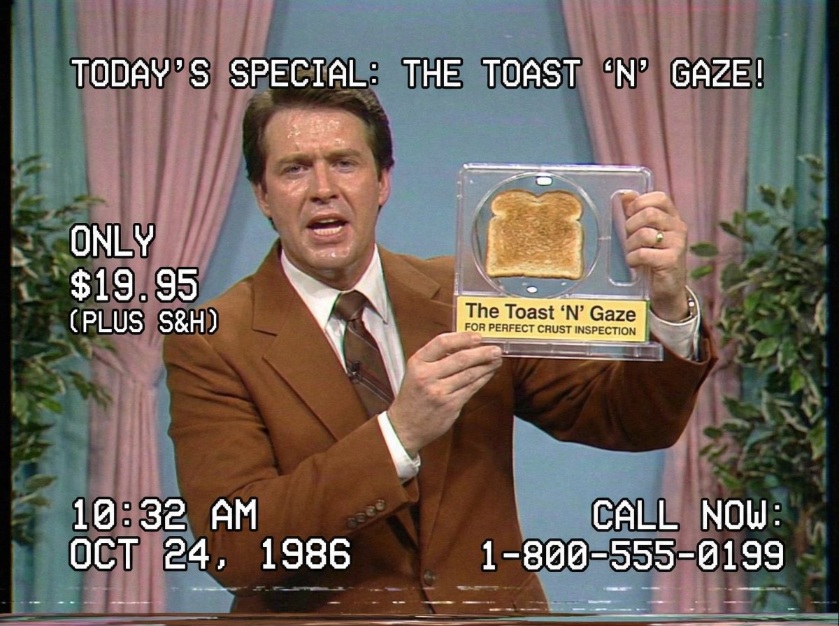 Still from a Shopping channel VHS tape from 1986, where someone is selling the most useless trinket ever invented