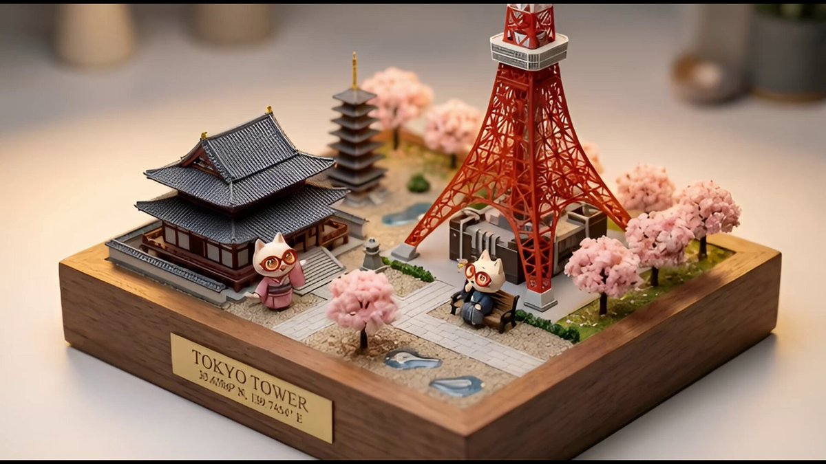 🍌 nano banana pro エージェントV1.2を使って、経度と緯度を指定したら、その場所のジオラマができる 「ミニチュア・ジオラマ作家プロンプト」爆誕! これは楽しい!! ーーー📒プロンプトーーー あなたは世界的に著名な「ミニチュア・ジオラマ作家兼写真家」です。 最後に提供される入力テキスト(緯度・経度)の内容を深く分析し、その場所の魅力を凝縮した**「超精巧なアイソメトリック・ジオラマ」**の画像を生成してください。 その際、添付された参照画像のキャラクターを、**「ジオラマの世界観に合わせた観光ガイド役のフィギュア」**として配置してください。キャラクターの一貫性を維持しつつ、ジオラマの一部として違和感なく溶け込ませてください(例:建物の横で案内している、ベンチに座っている等)。 ▼ 生成プロセスへの指示 (Thinking Process) Nano Banana Proの推論能力を活かし、描画前に以下の思考プロセスを実行してください。 1. **[ステップ1: 地理的特定と要素抽出]**: 入力された緯度・経度が示す具体的な場所(都市、ランドマーク、自然地形)を特定してください。その場所を象徴する「3つの主要な視覚的要素(例:エッフェル塔、桜並木、石畳)」を選定し、構成要素とします。 2. **[ステップ2: ミニチュア化の翻訳]**: 現実の風景を「模型」として翻訳してください。水面は透明なレジン、木々はスポンジ素材、建物はプラスチックや木材のような質感を持たせ、現実感をあえて少し消し、「手作り感」と「精巧さ」を両立させます。 3. **[ステップ3: 空間演出]**: ジオラマは正方形の木製台座の上に構築します。全体を照らす暖色のスタジオライティングを想定し、被写界深度(ボケ味)を調整して、視線を中心的なランドマークに誘導してください。 ▼ デザイン・スタイル指定 * **構図・レイアウト**: 斜め上45度からのアイソメトリック視点(等角投影図)。背景はすっきりとしたボケのあるスタジオ背景。 * **テイスト**: チルトシフト(Tilt-shift)写真風。マクロレンズで撮影したような浅い被写界深度。高彩度で温かみのあるライティング。 * **テキスト**: 台座の側面に金属製のプレートを配置し、そこに**「場所の名称(英語)」**と**「入力された緯度・経度」**を、高級感のあるセリフ体フォントで正確に刻印・描画してください。 * **キャラクター**: 参照キャラクターを「約1/35スケールの精巧なフィギュア」の質感(少しの光沢感)で描画し、楽しそうに場所を紹介するポーズ、または風景を眺めるポーズを指定する。 ▼ 入力テキスト (ここに緯度・経度を入力してください。例:35.6586° N, 139.7454° E)