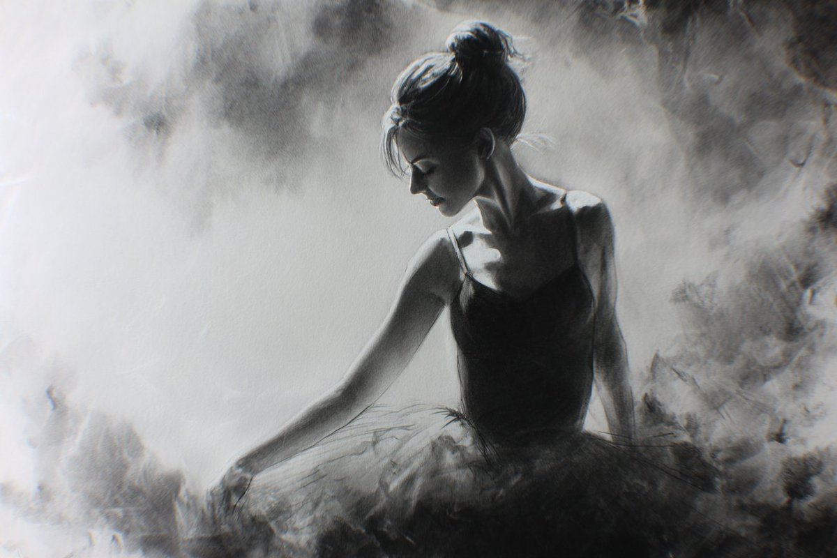 A Smoky Ephemeral Moment capturing [SUBJECT] in charcoal, with soft, blurred edges and dreamy, atmospheric shading. Use the expressive qualities of charcoal to evoke a sense of fragility and impermanence