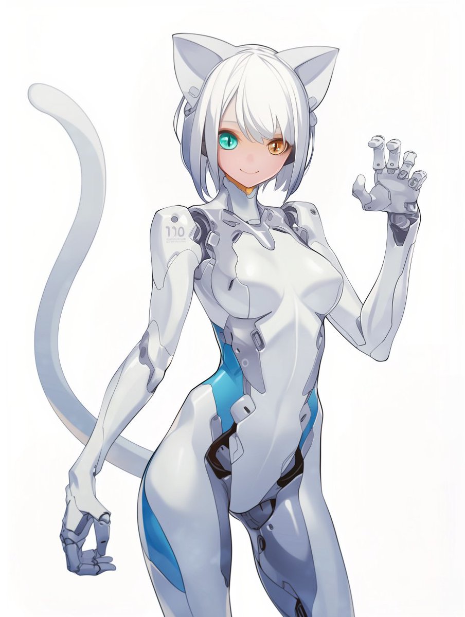 White cat cyborg girl figure image