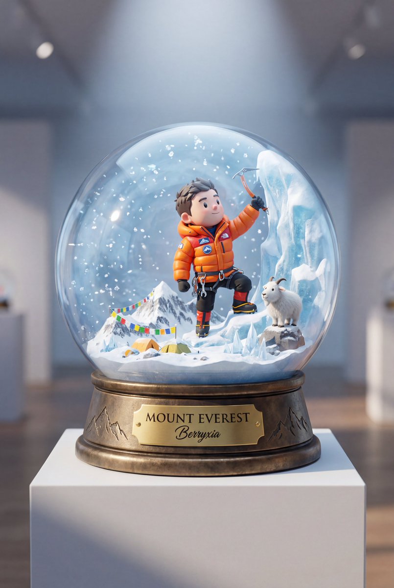 🚀今日来一弹,让美好的童年雪球的记忆再次浮现。 🏂🏻谁的童年记忆里没有一个“雪花球”啊!小时候满大街都在 卖的那种小摆件,轻轻一摇就有泡沫飘起来,还会伴着音 乐转,当时我硬是攒了好几块零花钱才买下一个,可惜后 来不知道丢哪儿了…现在想起来还是好怀念! 就是这份回忆突然给了我灵感——为什么不把更多场景和 这种“治愈感”结合起来? 尤其是加入动效、视觉冲击和趣味性,让简单的小美好变 得更有层次,你们觉得这个方向怎么样? 🏪应用场景:做小摆件的厂商是否可以做定制,文旅以经 典宣传都可以尝试。 ✍🏻使用方法:直接复制给YOUMIND/flowith/Gemini 等有🍌模型的都可以使用,以【攀登珠穆朗玛峰为例】。 🧠我的Prompt设计也是采用盲盒动态的形式展示场景和组合,比如是动作、底座、配饰的小动物、穿着等都是可以动态调整的也支持自定义,我是喜欢将其作为一个底座来设计,可以延伸出更多的玩法和可能性。