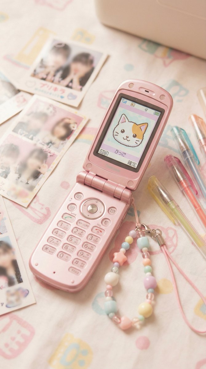 【可愛い×エモい画像プロンプトシリーズ】 平成のガラケーに、推しを入れたくない?📱✨ Nano Banana Proで、好きな画像を平成ガラケーの画面にはめ込