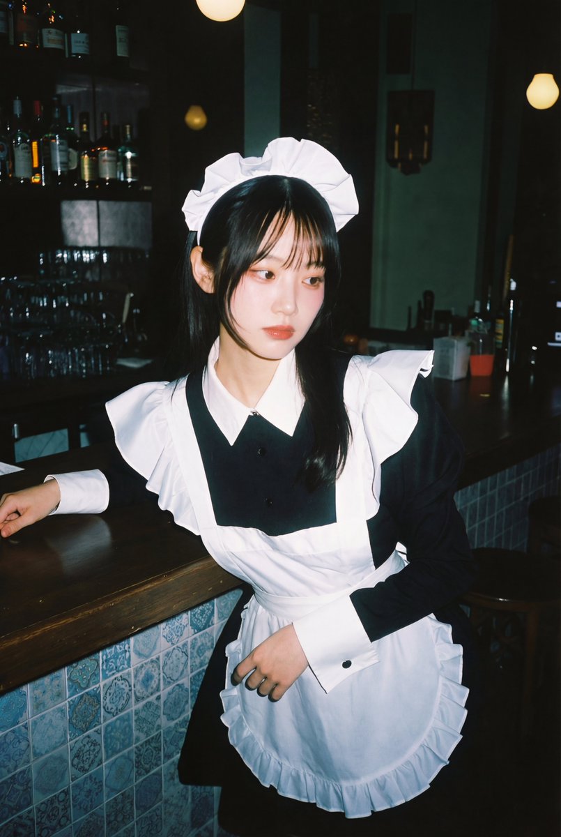 Z-imageを使って高品質画像を秒速で生成してみたら想像以上に良かったです✨ 特徴としてはとにかく生成が早い! 誇張抜きに秒です。 そしてなんといっても超現実的な表現でリアル。 個人的にはGrokが好みなんですが並びますね。 ただt2iしかできなそうなので、あとで他のモデルでカスタムする使い道がいいかなって思ってます。 せっかくなので同じプロンプトで他のモデルとも生成して比較してみました。 1枚目:Z-image 2枚目:Seedream 4.5 3枚目:Nano Banana Pro 4枚目:Grok 【プロンプト】 Scene: cozy maid café or private bar counter at night. A young East Asian woman with long black hair in low twin tails, wearing fluffy gray wolf ears headband, white frilly off-shoulder maid blouse with black ribbon details and ultra-short black maid skirt with white lace trim, leaning forward over the wooden counter with both hands, looking back over her shoulder toward the camera with a playful expression. Background shows dimly lit shelves with bottles and glasses, warm hanging lamps creating bokeh, authentic cheap CCTV degradation, photorealistic-quality