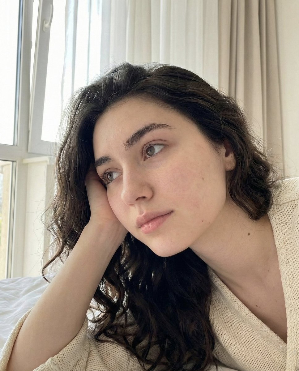 "expression": "soft, calm, relaxed, with a slight tilt of the head",