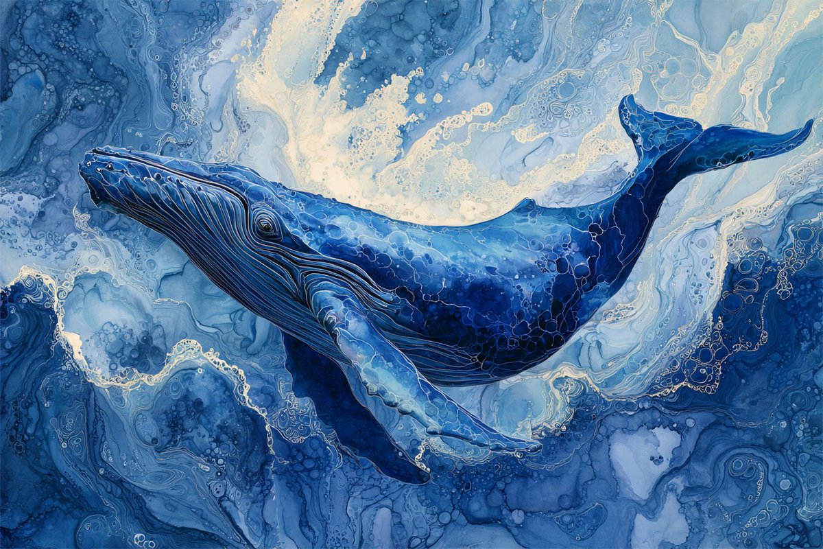 [SUBJECT] depicted in an Oceanic Watercolor Symphony, capturing the fluidity and depth of the sea. Use a palette of [COLOR1] and [COLOR2] to evoke the serene and powerful nature of ocean waves and marine life.