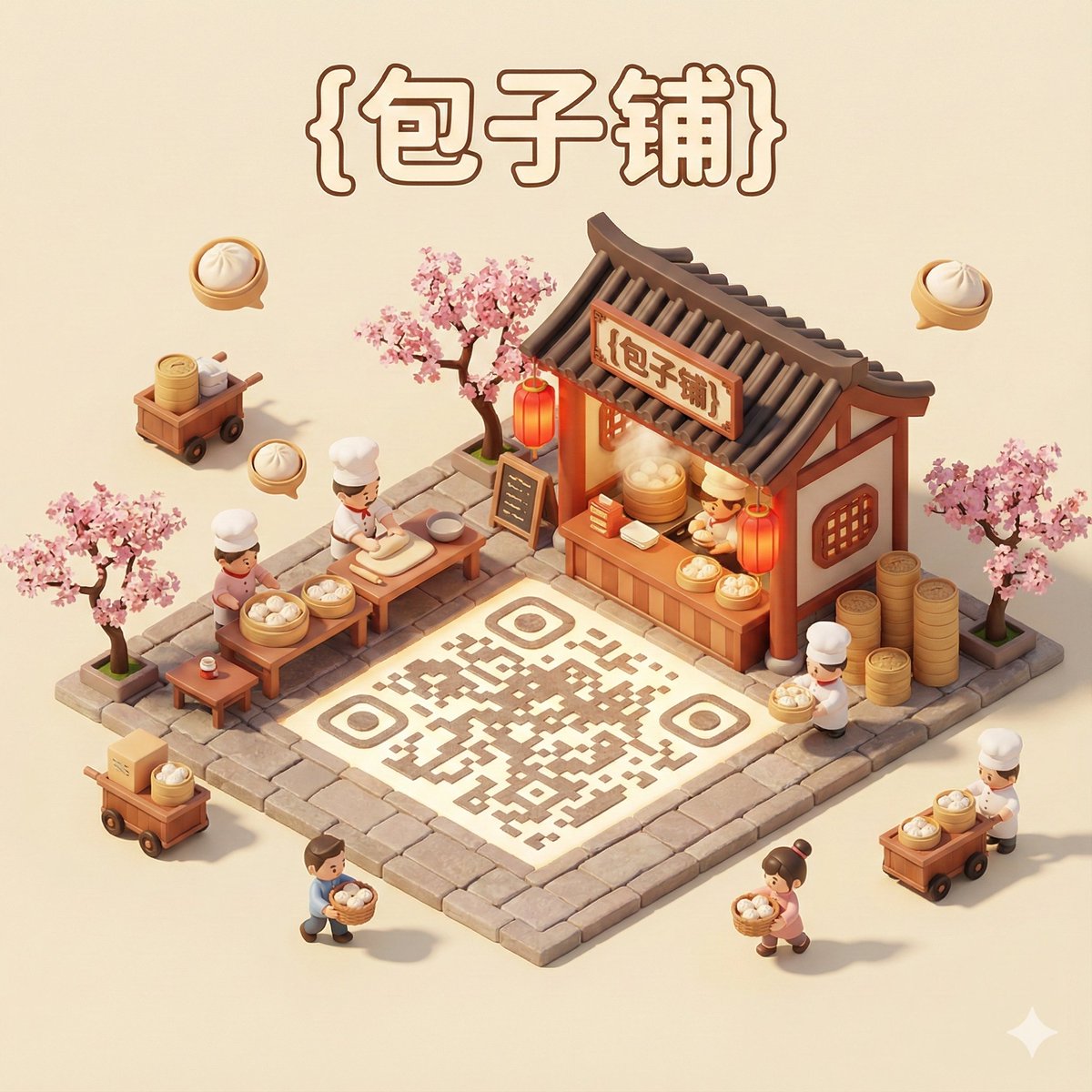 🖼️Miniature 3D cartoon-style scene featuring a seamlessly integrated QR code