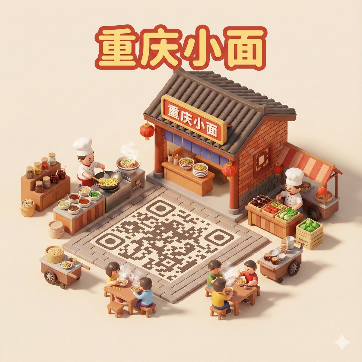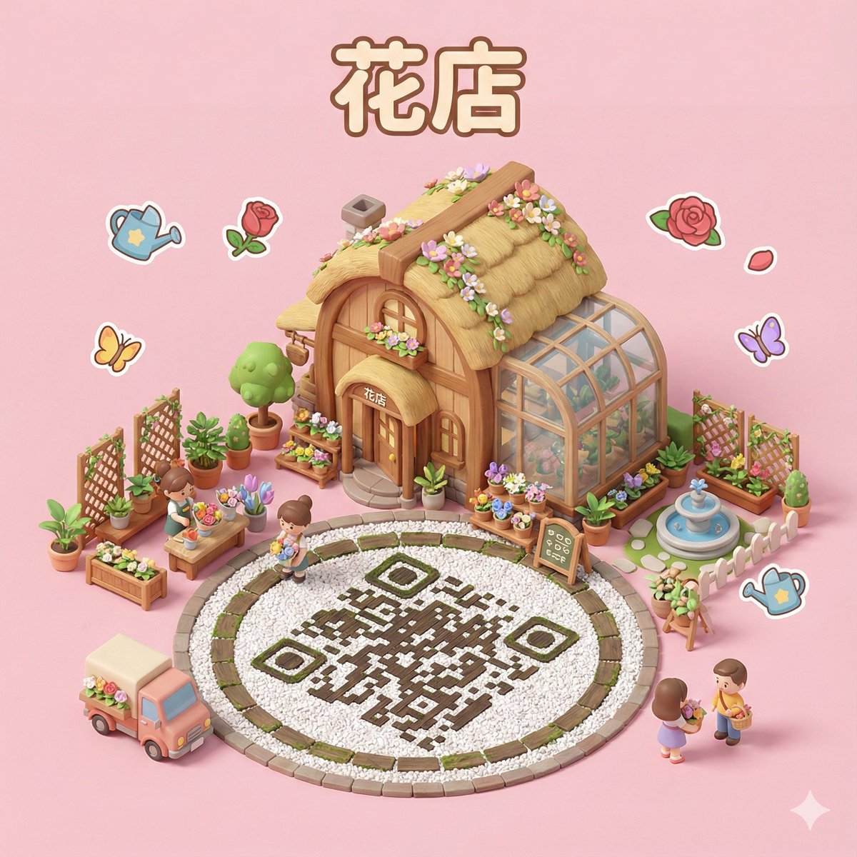 🖼️Miniature 3D cartoon-style scene featuring a seamlessly integrated QR code 🔥