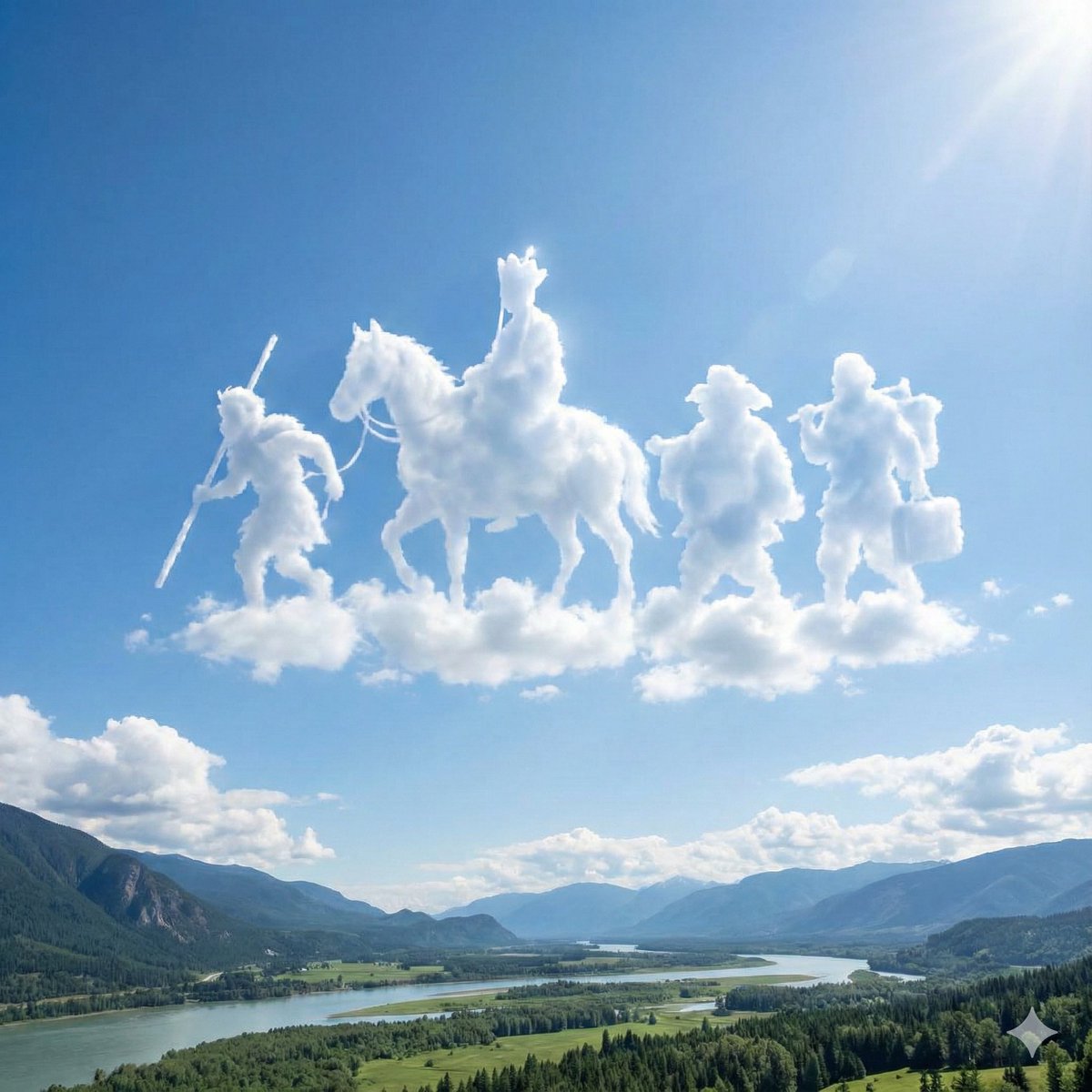 这个云朵造型很棒! 我把下方景观也整成了模板,填入你要的主体和景观即可! 🍌Nano banana Pro Prompt: 创建一个超写实的天空场景,柔和、自然的云层有机地聚合,形成一个清晰可辨的【主体】轮廓。云朵形态高悬在明亮蔚蓝的天空中,自然漂浮,其下方是清晰可识别的【景观描述】景观,为画面提供稳固的视觉基础。 画面构图为正方形(1080×1080),云层造型位于画面上半部分,下方的风景使整体场景更加平衡。光线清晰明亮,呈现出日光直射的效果,云朵上有被阳光照亮的高光,增强了层次感、柔软度与真实感。 整体氛围应当宁静、积极、富有视觉冲击力,色彩饱和度高,画面干净纯粹,营造出平和而清新的感觉。 主体:西游记唐僧师徒 景观描述:香港维多利亚港