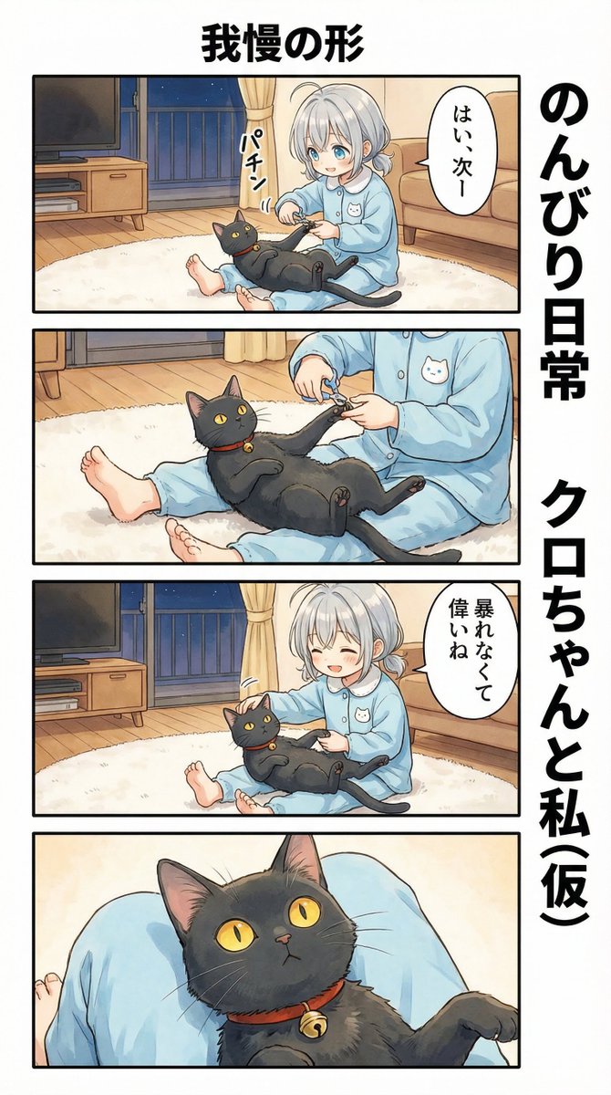 こんばんは🌛 お疲れ様でした🍵 おやすみなさい~💤 👧虚無顔😂 いいこにしてたからおやつ食べようね #のんクロ AI漫画 Nano Banana Pro 🍌