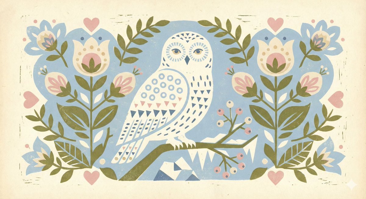 Experimented with Scandinavian folk-art on Nano Banana Pro and it came out looking adorable. Prompt: A Scandinavian folk-art depiction of [SUBJECT], using minimal shapes, soft pastel hues, stylized florals, and cozy symmetrical motifs. Woodblock-print texture with a charming, storybook feel.