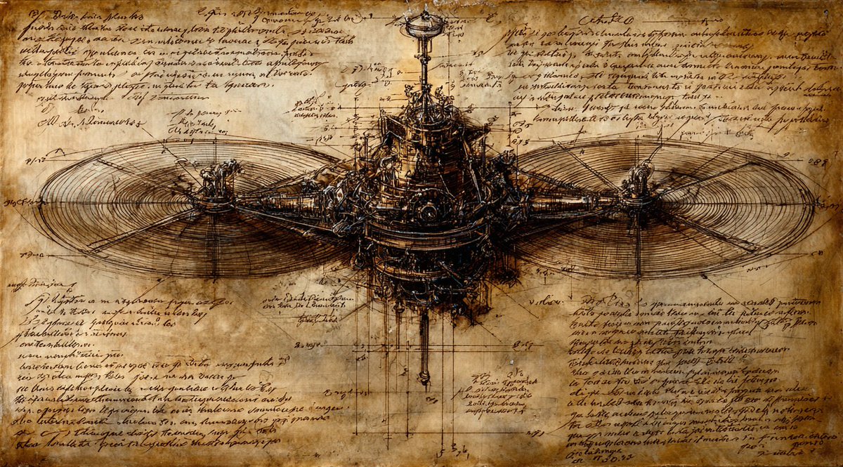 a highly detailed 15th-century leonardo da vinci codex drawing depicting [SUBJECT] in its complete modern 2025 form, with all contemporary components fully present and accurate. the object is rendered using renaissance hand-drawn techniques: graphite and ink linework, cross-hatching, proportional geometry, exploded technical views, cutaway sections, and motion diagrams. modern technology is visually translated through precise schematic logic, not simplified or altered. dense handwritten annotations in italian mirror writing surround the drawing. aged parchment background, uneven ink flow, smudges, stains, burn marks. flat manuscript lighting, no modern rendering, no photography, no 3d, no modern illustration style. authentic leonardo da vinci notebook aestheticPROMPT TO ART a highly detailed 15th-century leonardo da vinci codex drawing de