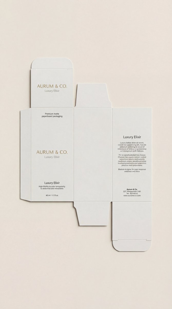 "scene_description": "A photorealistic, high-end 3D product visualization of a perfectly assembled packaging box derived from a dieline, set in a pristine minimal studio.",