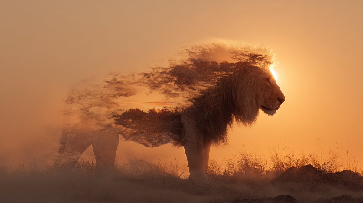 🚨PromptShare🚨 DOUBLE EXPOSURE a majestic [animal] silhouette with [integrated natural or symbolic elements inside its form], positioned against the backdrop of [dramatic or atmospheric landscape]. Double exposure style, blending the animal seamlessly into [descriptive environmental details]. cinematic lighting, atmospheric depth, high resolution, artistic composition, ultra-realistic texture and mood. Now you turn, share me your prefer animal in double exposure